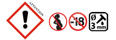 Consignes de sécurité : En cas de consultation médicale, garder à disposition l’étiquette. Ne pas manger, boire, ou fumer en manipulant ce produit. EN CAS D’INGESTION: appeler un centre Antipoison ou un médecin en cas de malaise. Rincer la bouche. En cas de contact : Peau : laver abondamment à l’eau et au savon. Yeux : rincer immédiatement à l’eau pendant plusieurs minutes. Ingestion : rincer la bouche et consulter un médecin si nécessaire